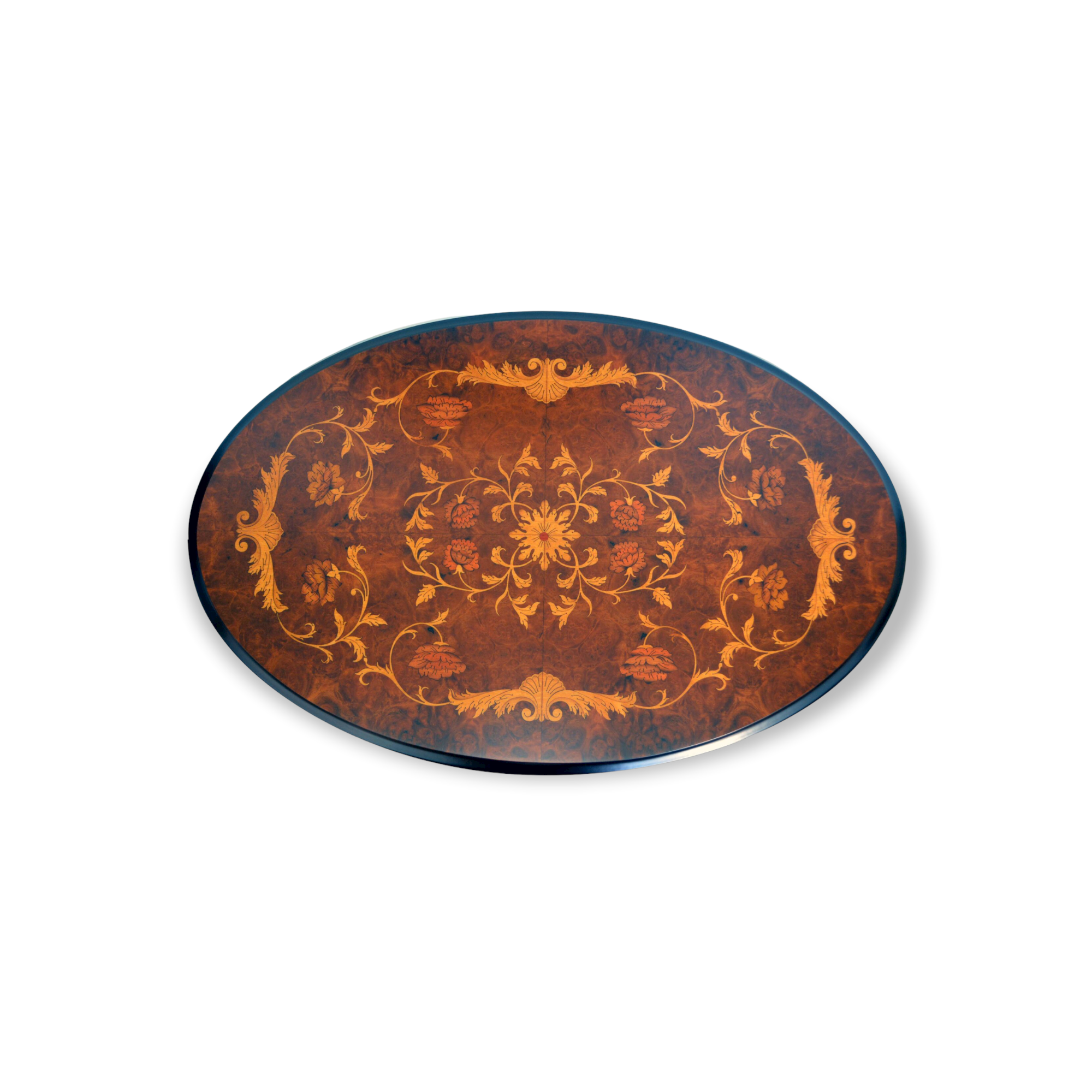 The Ferrarese walnut briar used in the construction of this table is known for its rich tones and beautiful grain patterns. The antique matt finish further enhances the natural beauty of the wood, giving the table a sense of timeless grandeur and sophistication.